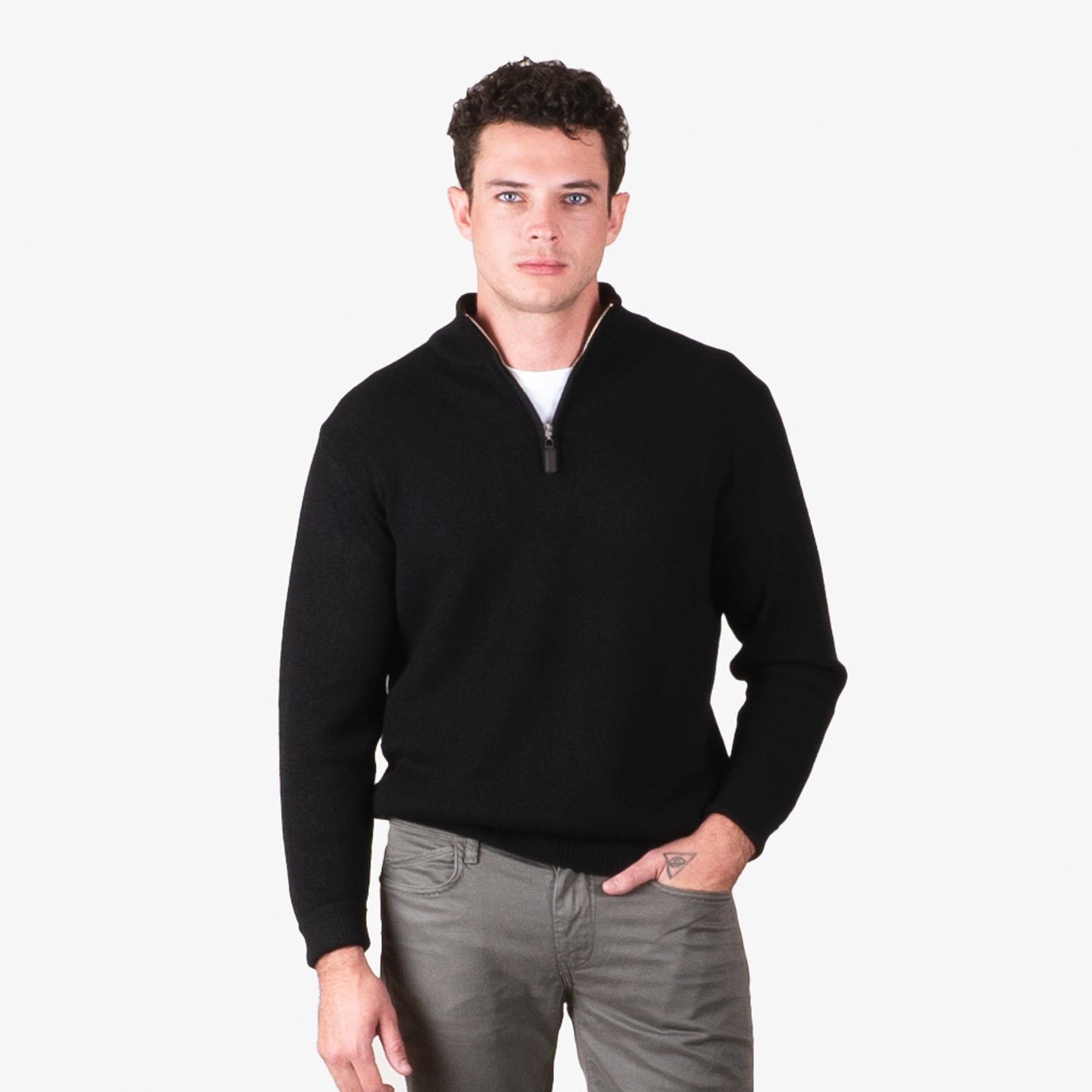 Our classic, easy fitting sweater in 100% alpaca. Each colour has a complementary contrast inner collar that sets the sweater apart. The link stitch is light and has tremendous memory, allowing freedom of movement while maintaining its shape.